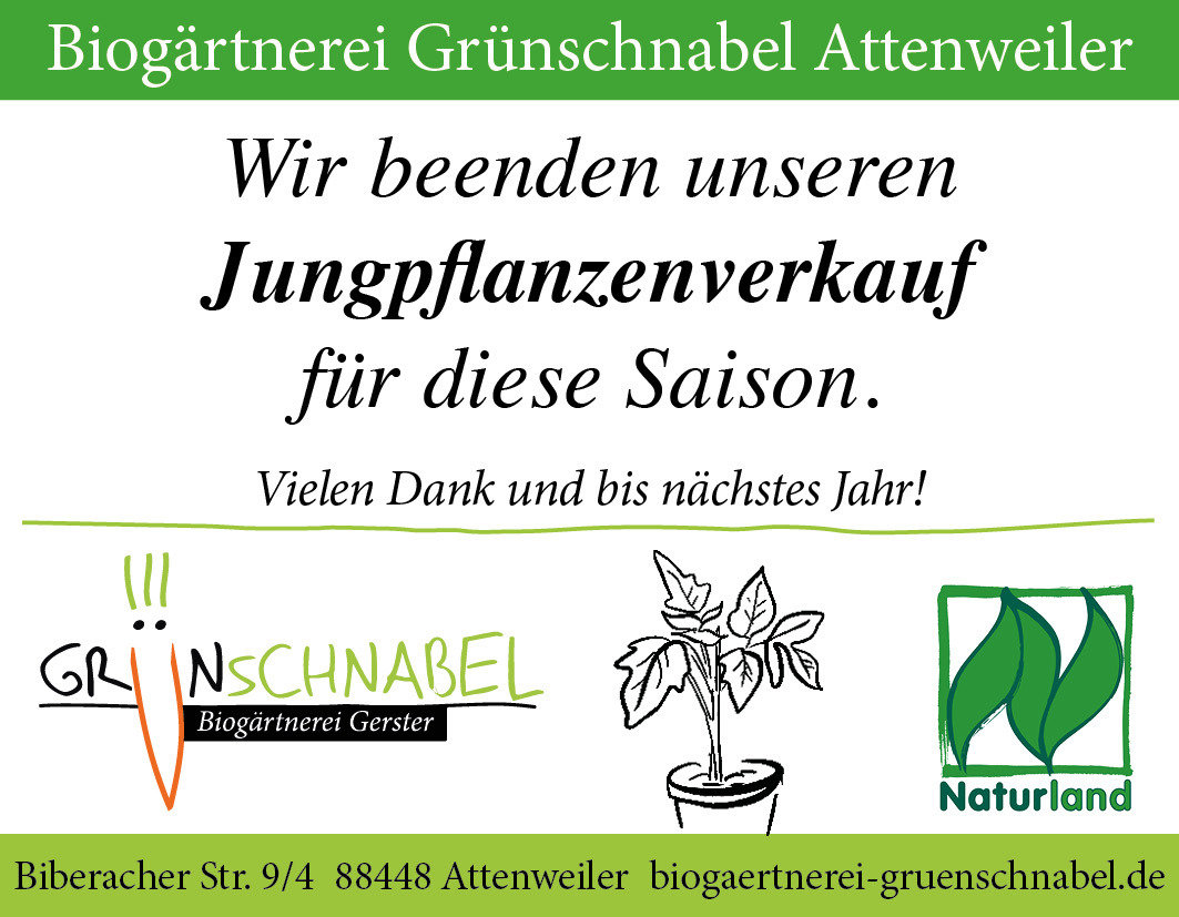 In unserer Bio-Gärtnerei Grünschnabel in Attenweiler nahe Biberach bauen wir auf etwa einem halben Hektar Ackerfläche und in drei Gewächshäusern Gemüse in bester Bioqualität an.
